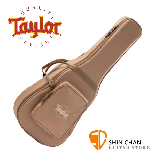 Taylor 吉他袋將硬盒的防護性與輕巧的便攜包相結合,棕褐色的琴袋,琴袋外部為600D,內部為 70D,