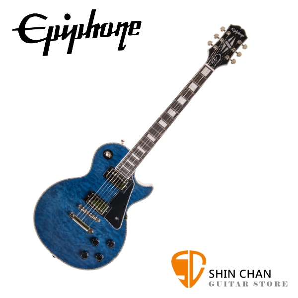 Epiphone Les Paul Custom Quilt Maple Top Viper Blue 將 1950 年代 Les Paul 的經典外觀與音色靈魂注入現代製琴工藝。