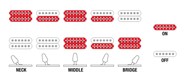 .五向拾音器選擇開關位於最靠近琴頸的位置