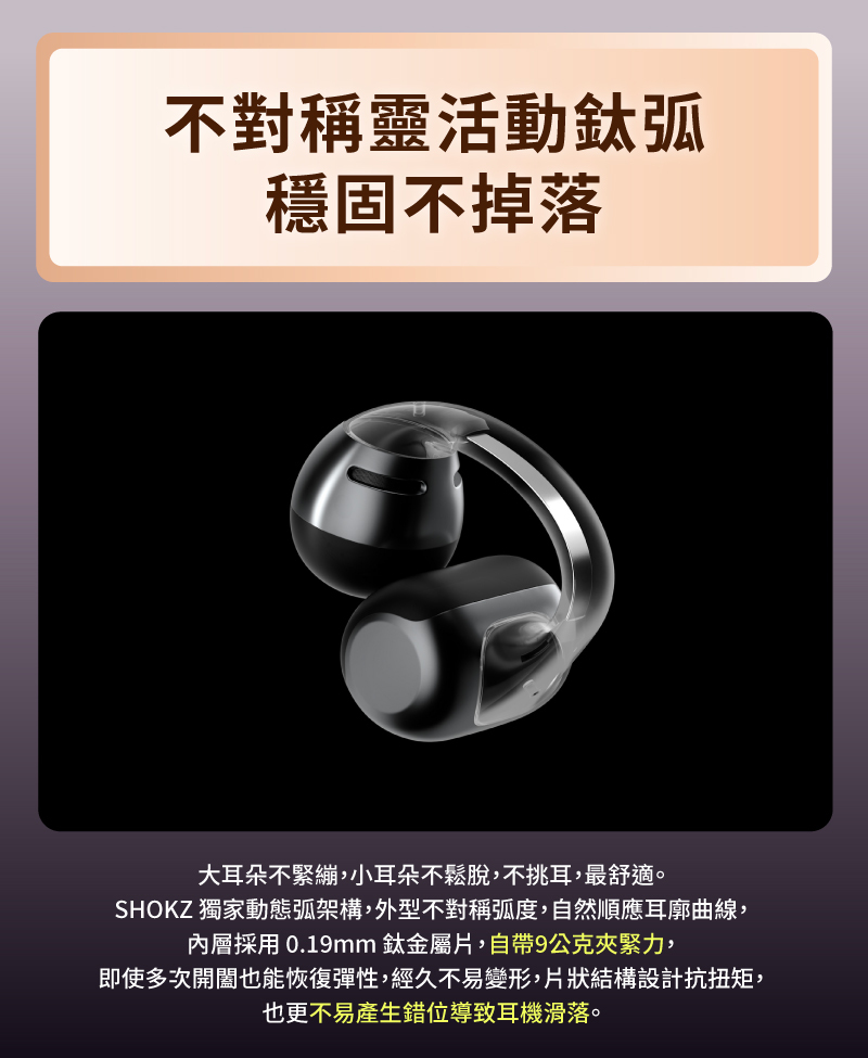 ✨ 不對稱弧度設計 + 自帶 9g 夾緊力,不挑耳型都適配。