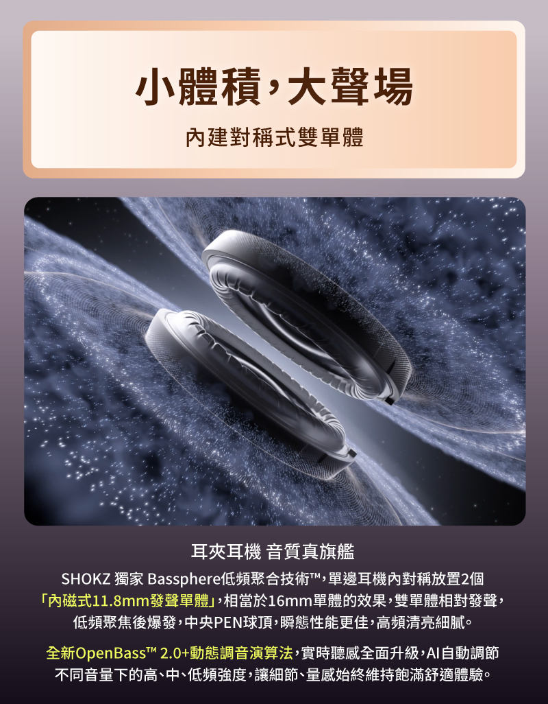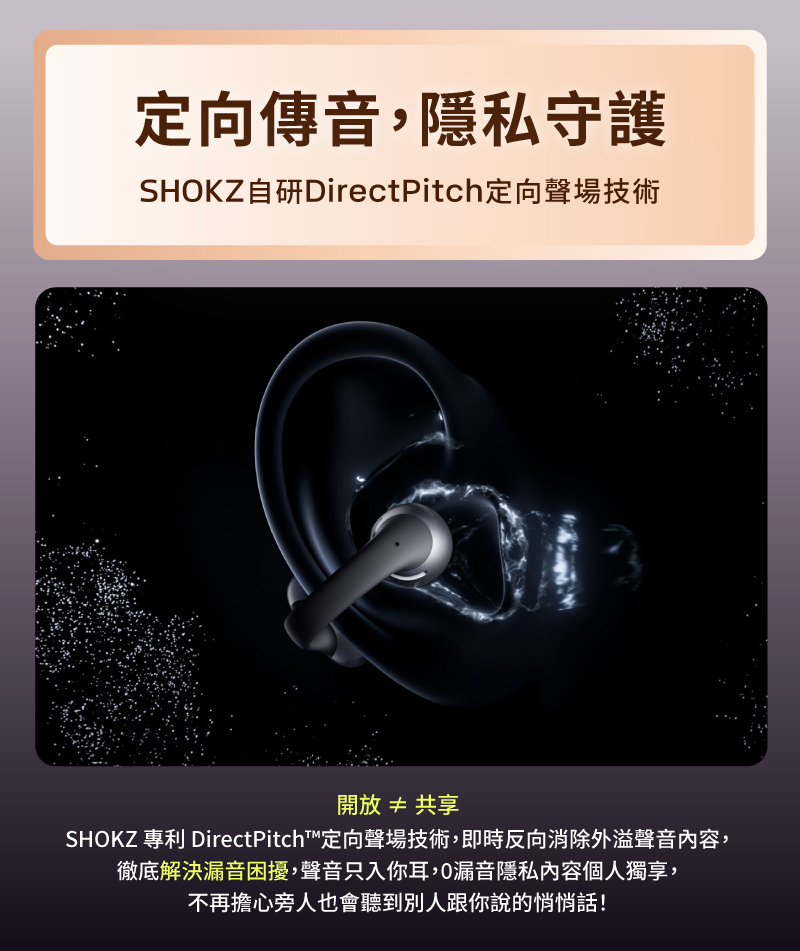 ✨ Shokz DirectPitch™ 定向聲場技術,解決漏音困擾。