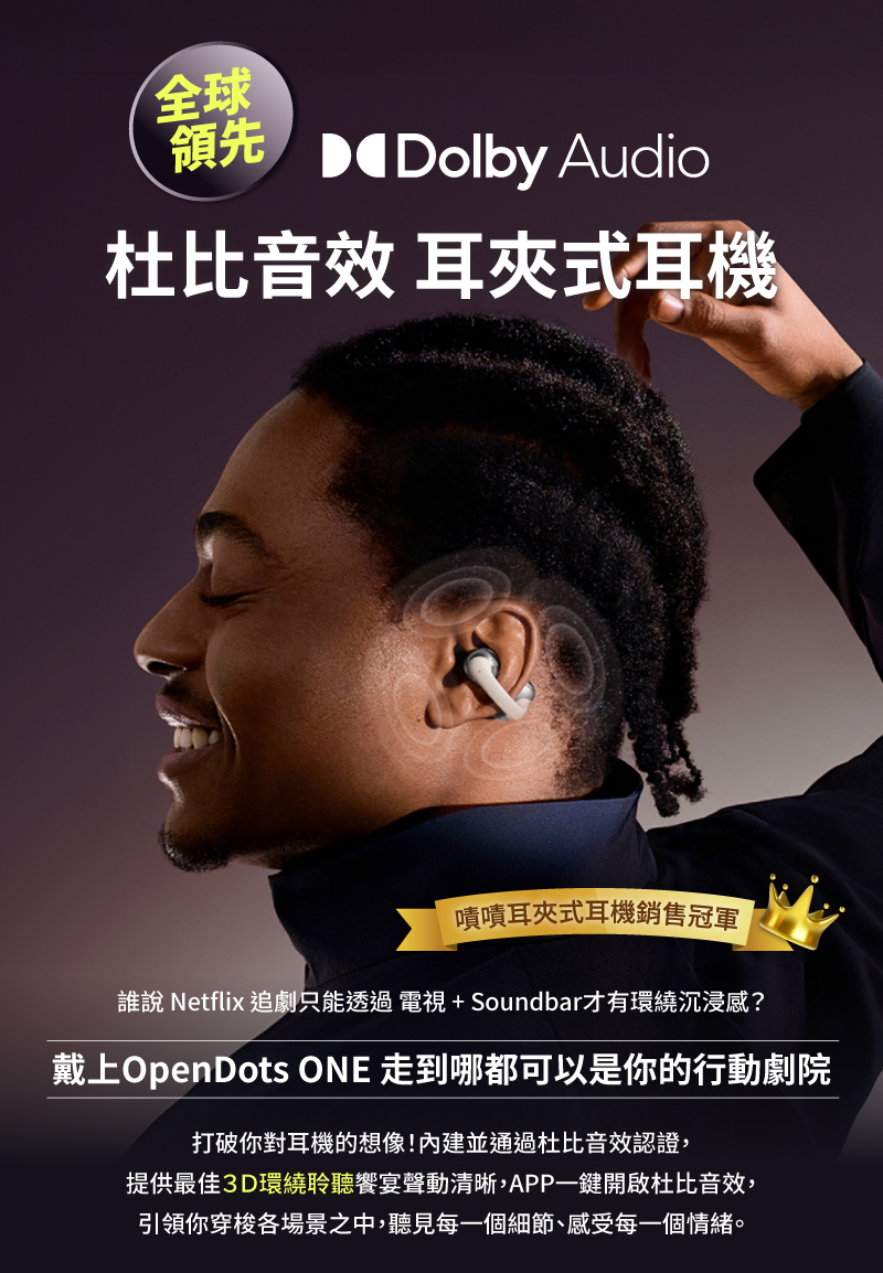 ✨ 全球首款「Dolby Audio 杜比音效」耳夾式耳機。