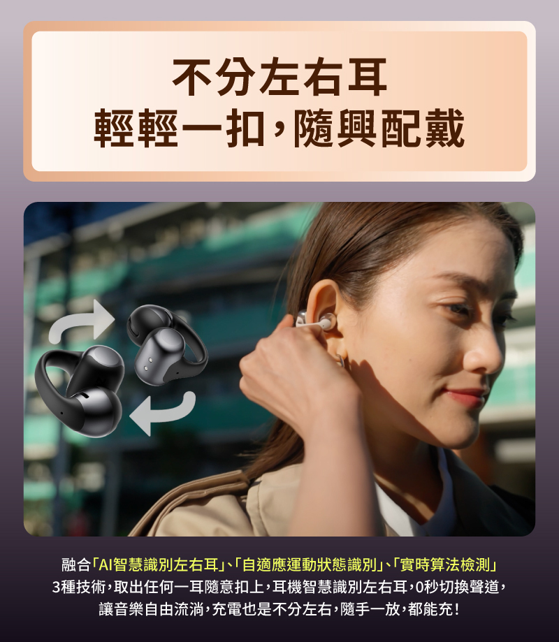 ✨ AI 智慧識別左右耳,自動切換左右聲道及自定義操作。