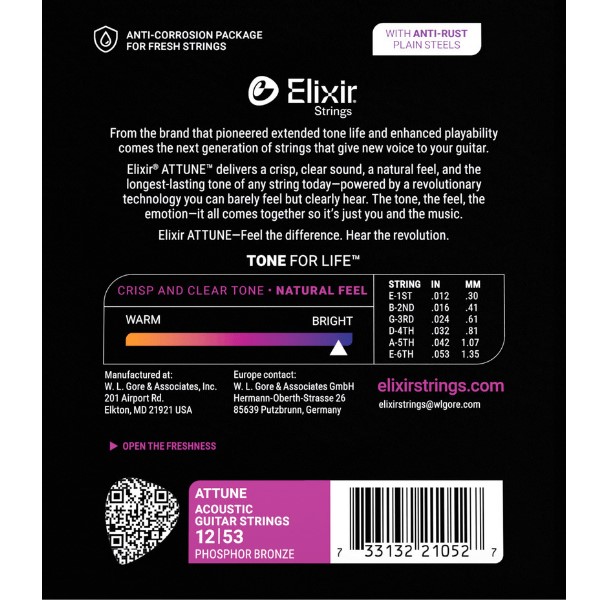 - 防銹鍍層鋼弦可抵抗導致音色衰減的腐蝕,進而延長整套琴弦的使用壽命。