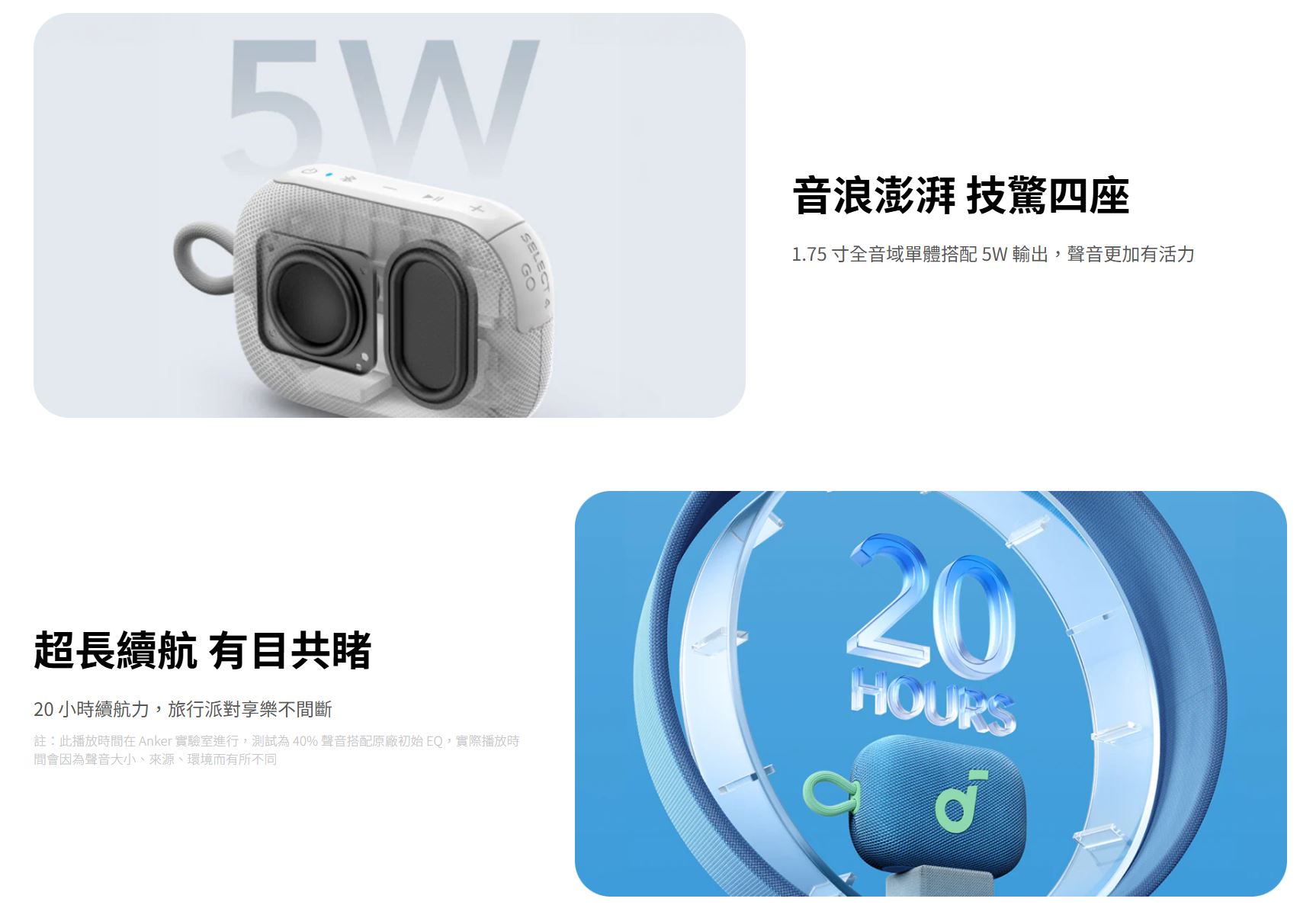 Soundcore 聲闊 Select 4 Go 防水可攜式藍牙喇叭 / 台灣公司貨保固