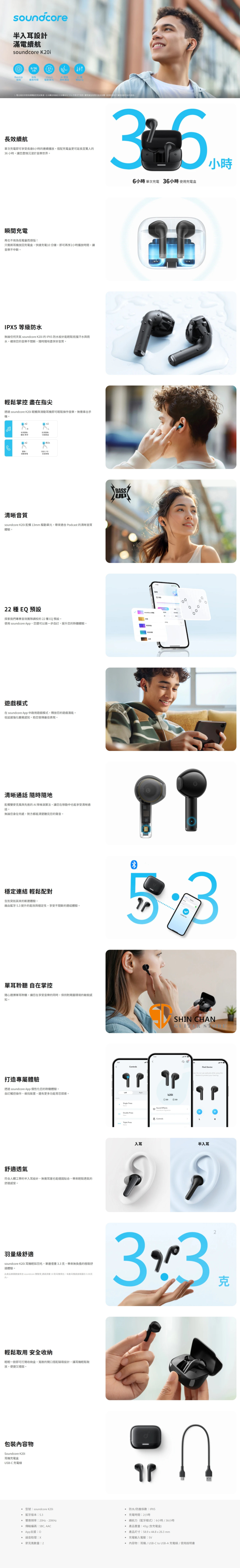 Soundcore K20i 半入耳式藍牙耳機/13mm驅動單體 台灣公司貨保固